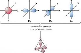 El estímulo para excitar al electrón del 2s al 2pz es aportado por el primer electrón en formar enlace con un átomo con este tipo de valencia. Por ejemplo, el hidrógeno en el caso del metano. Esto a su vez incrementa la necesidad de llenado de los restantes orbitales. Estos nuevos orbitales híbridos dejan de ser llamados 2s y 2p y son ahora llamados sp3 (un poco de ambos orbitales):